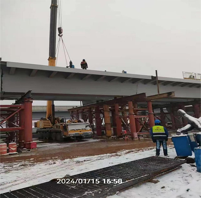 2024年元月15日,西安迎來了冬天的第一場大雪。隨著最后一塊鋼箱梁的精準吊裝到位,該部分高架橋整體架設(shè)完成并順利合龍!