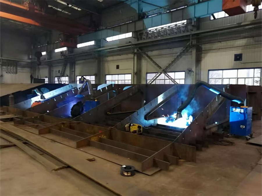 為了嚴把質(zhì)量關(guān),在材料進廠和生產(chǎn)制作過程中,陜重公司更是自上而下,精益求精,專職檢驗人員從不放過對每張鋼板的進廠檢驗和下料、制作的過程檢驗,對每一條大、小焊縫的反復(fù)檢查和探傷;鋼箱梁的加工制作,無論是在外形尺寸上,還是在外觀和防腐質(zhì)量上,高標準,嚴要求,精細化管理,確保給社會交出安全的、高質(zhì)量的鋼橋產(chǎn)品。
